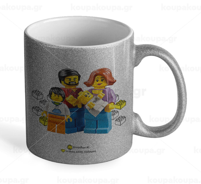 Τύπου Lego family, Κούπα Ασημένια Glitter που γυαλίζει, κεραμική, 330ml