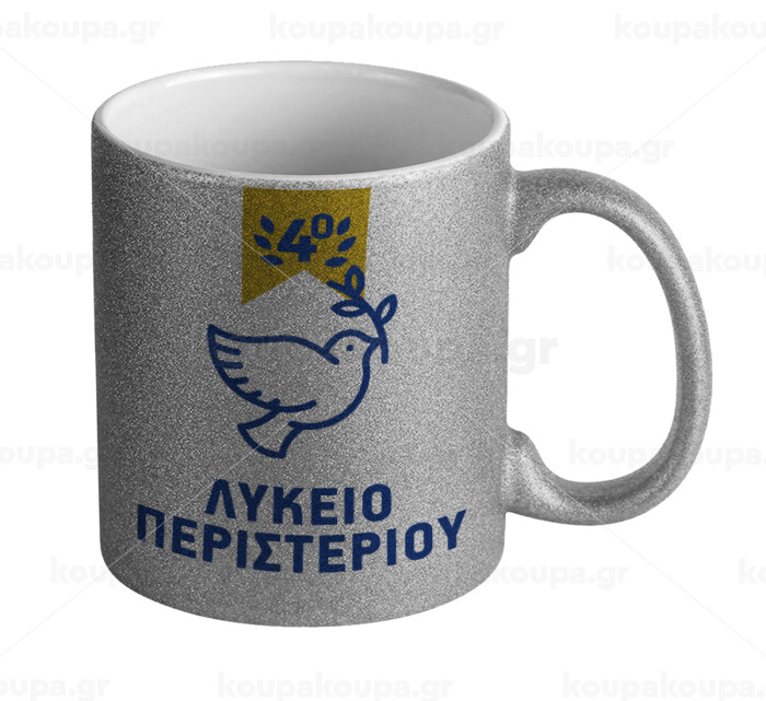 Έμβλημα Σχολικό μπλε/χρυσό περιστέρι, Κούπα Ασημένια Glitter που γυαλίζει, κεραμική, 330ml