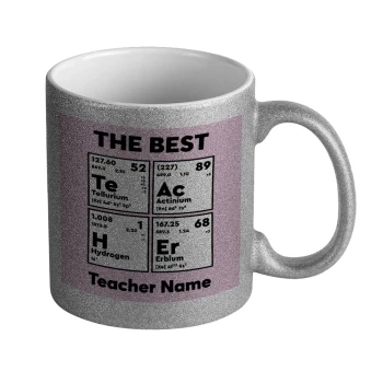 THE BEST Teacher chemical symbols, Κούπα Ασημένια Glitter που γυαλίζει, κεραμική, 330ml