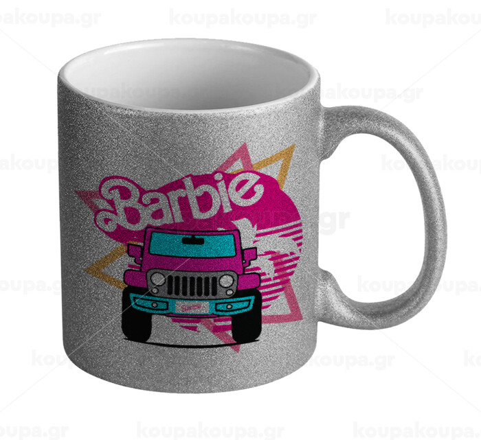 Barbie car, Κούπα Ασημένια Glitter που γυαλίζει, κεραμική, 330ml