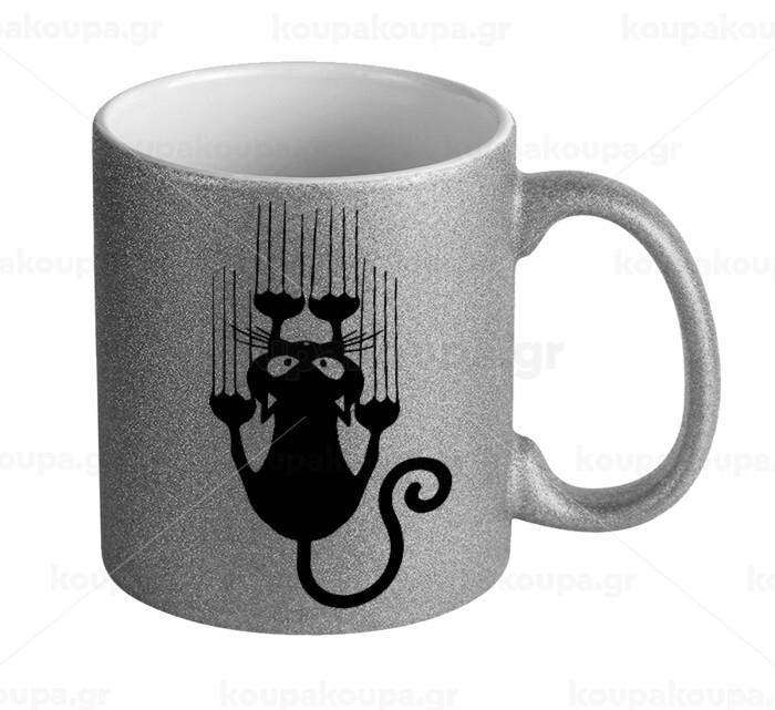 Cat scratching, Κούπα Ασημένια Glitter που γυαλίζει, κεραμική, 330ml