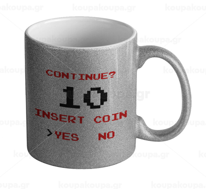 Continue? YES - NO, Κούπα Ασημένια Glitter που γυαλίζει, κεραμική, 330ml