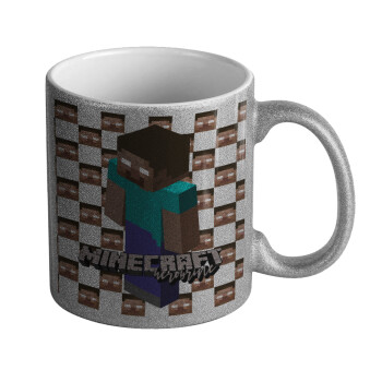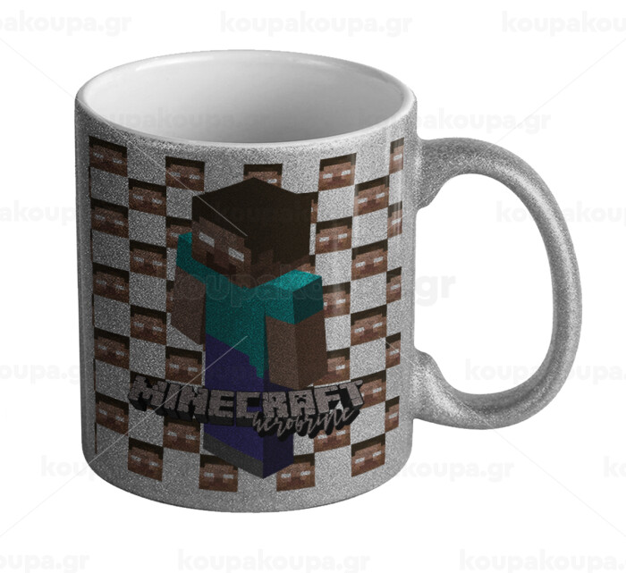 Minecraft herobrine, Κούπα Ασημένια Glitter που γυαλίζει, κεραμική, 330ml