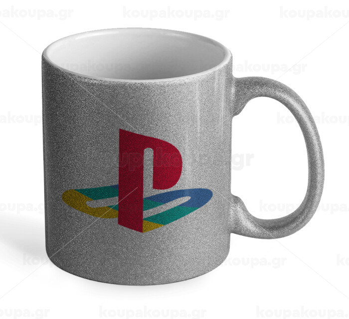 Playstation, Κούπα Ασημένια Glitter που γυαλίζει, κεραμική, 330ml
