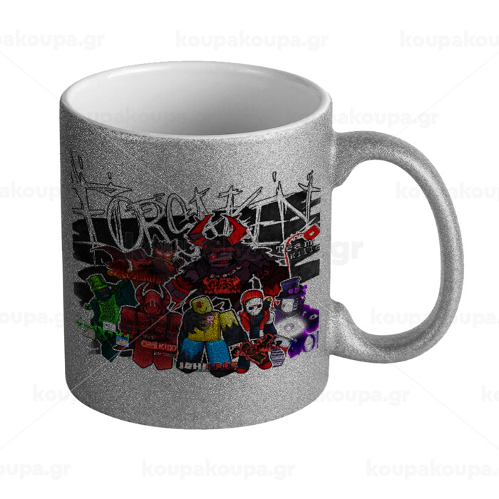 Roblox Forsaken, Κούπα Ασημένια Glitter που γυαλίζει, κεραμική, 330ml
