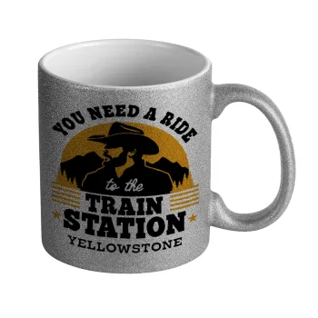 You need a ride to the train station, Κούπα Ασημένια Glitter που γυαλίζει, κεραμική, 330ml