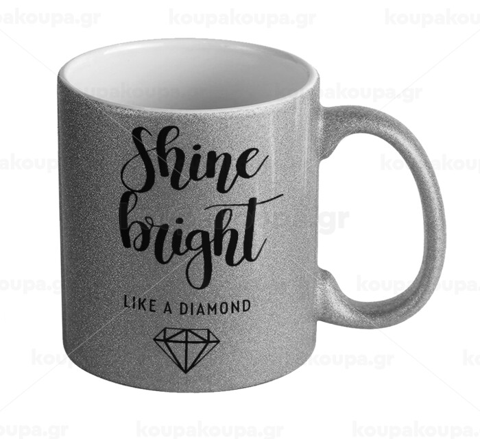 Bright, Shine like a Diamond, Κούπα Ασημένια Glitter που γυαλίζει, κεραμική, 330ml