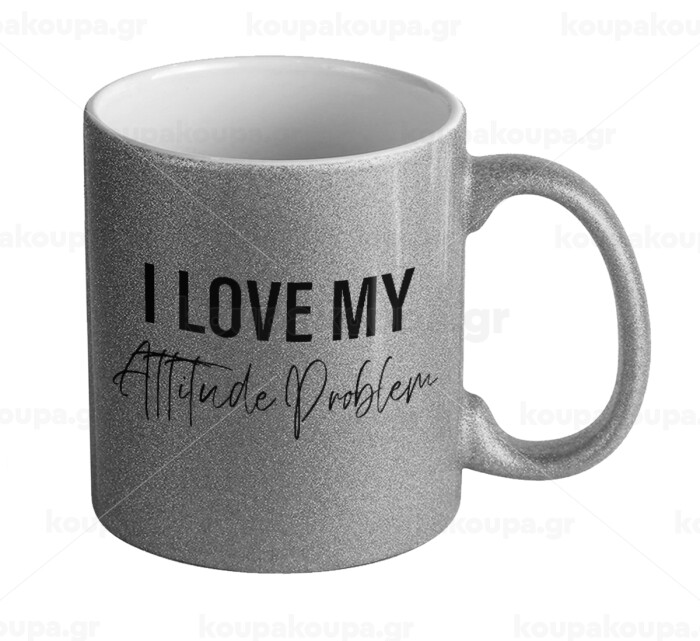 I love my attitude problem, Κούπα Ασημένια Glitter που γυαλίζει, κεραμική, 330ml