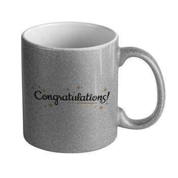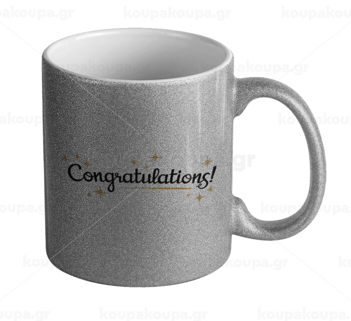 Congratulations, Κούπα Ασημένια Glitter που γυαλίζει, κεραμική, 330ml