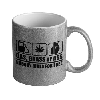 Gas, Grass or Ass, Κούπα Ασημένια Glitter που γυαλίζει, κεραμική, 330ml