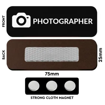 PHOTOGRAPHER, Name Tags/Badge Ξύλινο με μαγνήτη ασφαλείας (75x25mm)