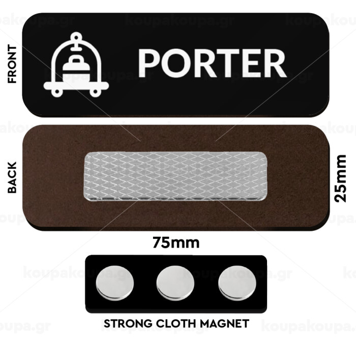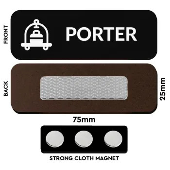 PORTER, Name Tags/Badge Ξύλινο με μαγνήτη ασφαλείας (75x25mm)