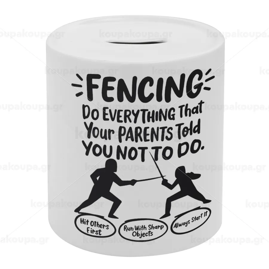 Fencing, do everything that your parents told you not to do., Κουμπαράς πορσελάνης με τάπα