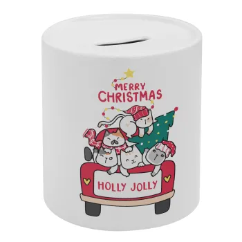 Merry Christmas cats in car, Κουμπαράς πορσελάνης με τάπα