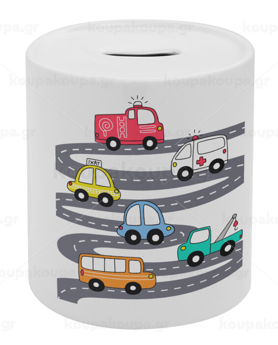 Hand drawn childish set with cars, Κουμπαράς πορσελάνης με τάπα
