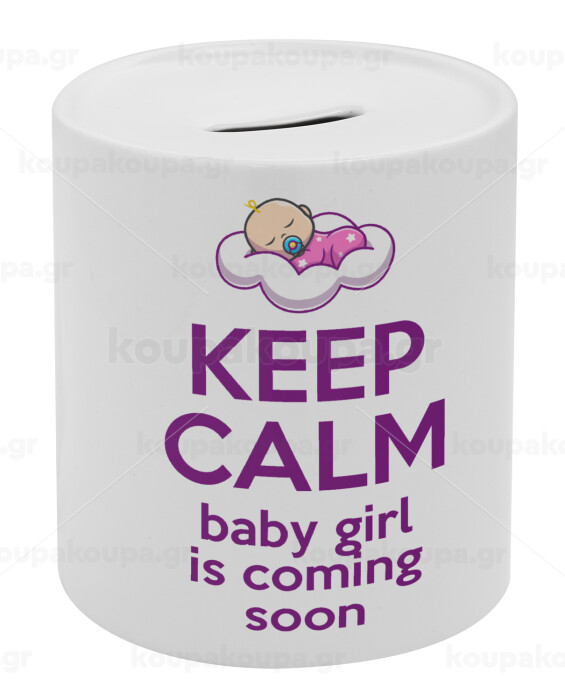 KEEP CALM baby girl is coming soon!!!, Κουμπαράς πορσελάνης με τάπα