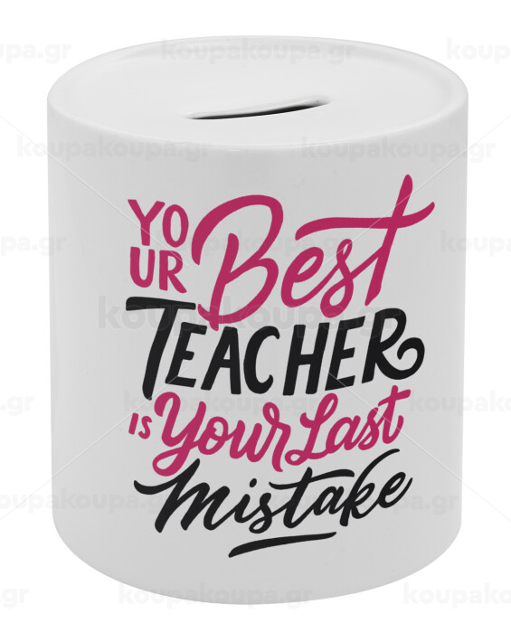 Typography quotes your best teacher is your last mistake, Κουμπαράς πορσελάνης με τάπα
