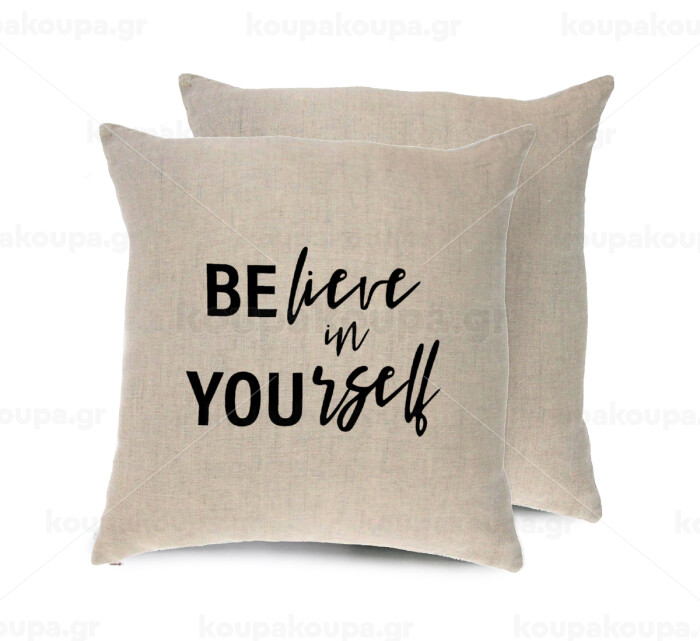 Believe in your self, Μαξιλάρι καναπέ ΛΙΝΟ 40x40cm περιέχεται το γέμισμα