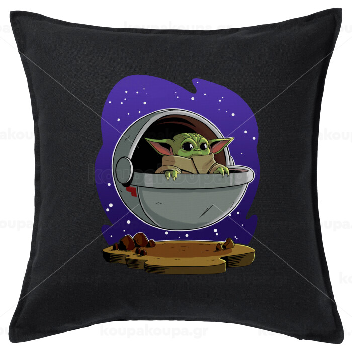 Baby Yoda mandalorian, Μαξιλάρι καναπέ Μαύρο 100% βαμβάκι, περιέχεται το γέμισμα (50x50cm)
