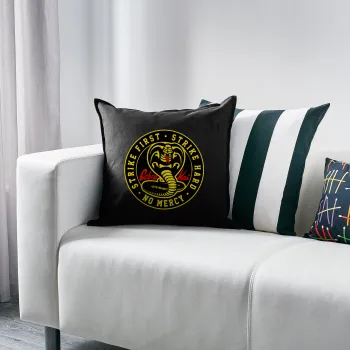 cobra kai strike first dojo, Μαξιλάρι καναπέ Μαύρο 100% βαμβάκι, περιέχεται το γέμισμα (50x50cm)