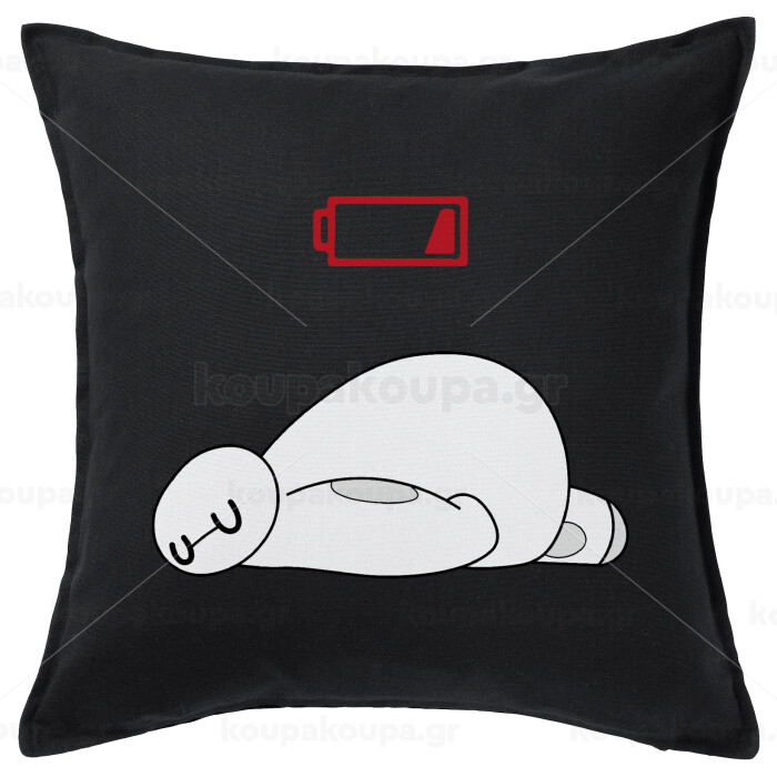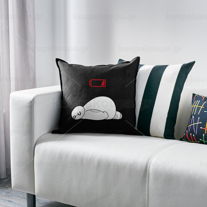 Baymax battery low, Μαξιλάρι καναπέ Μαύρο 100% βαμβάκι, περιέχεται το γέμισμα (50x50cm)
