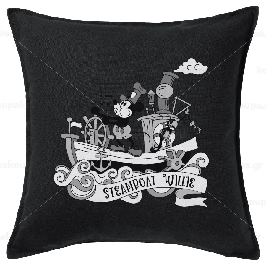 Mickey steamboat, Μαξιλάρι καναπέ Μαύρο 100% βαμβάκι, περιέχεται το γέμισμα (50x50cm)