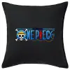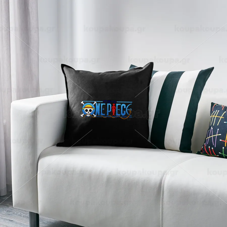 Onepiece logo, Μαξιλάρι καναπέ Μαύρο 100% βαμβάκι, περιέχεται το γέμισμα (50x50cm)