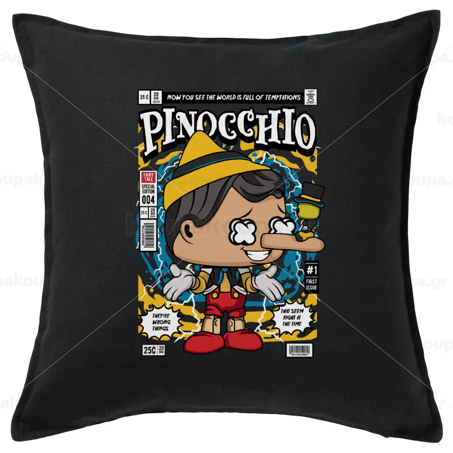 Pinocchio, Μαξιλάρι καναπέ Μαύρο 100% βαμβάκι, περιέχεται το γέμισμα (50x50cm)