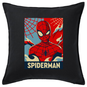 Spiderman kid, Μαξιλάρι καναπέ Μαύρο 100% βαμβάκι, περιέχεται το γέμισμα (50x50cm)
