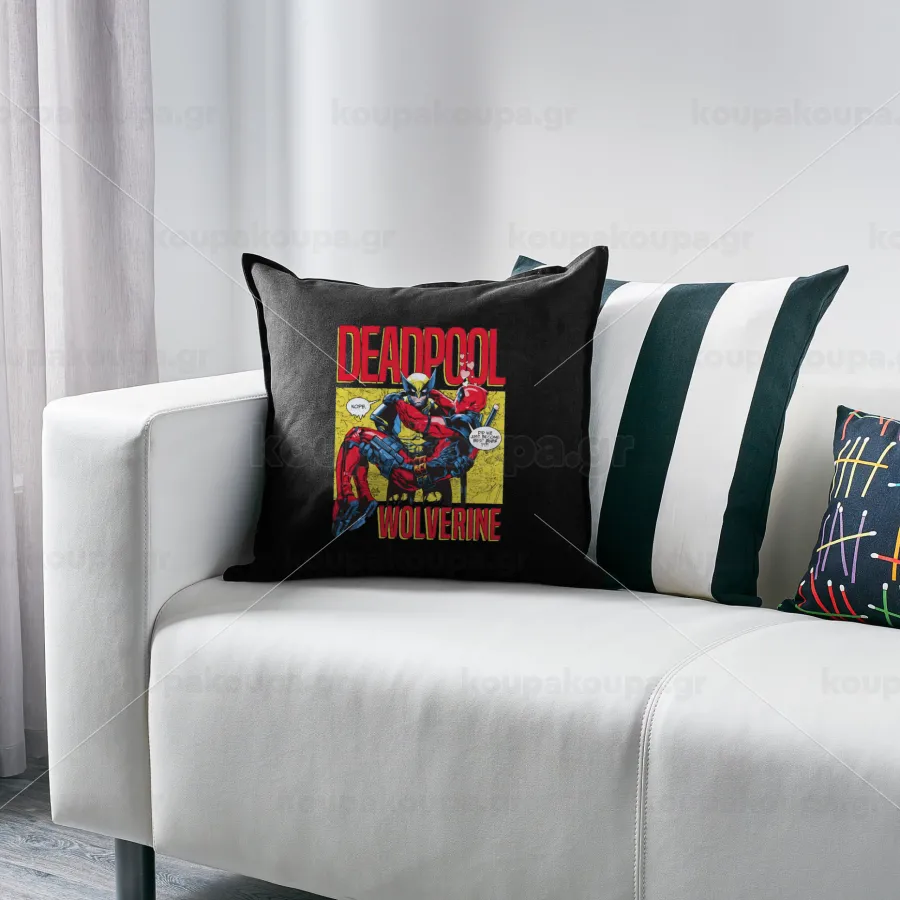 Superhero Deadpool Wolverine, Μαξιλάρι καναπέ Μαύρο 100% βαμβάκι, περιέχεται το γέμισμα (50x50cm)