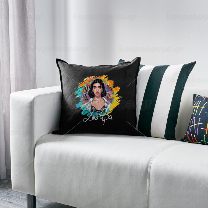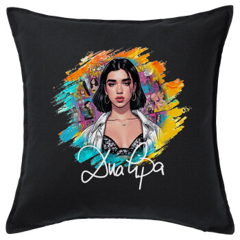 Dua lipa, Μαξιλάρι καναπέ Μαύρο 100% βαμβάκι, περιέχεται το γέμισμα (50x50cm)