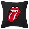 Rolling Stones Kiss, Μαξιλάρι καναπέ Μαύρο 100% βαμβάκι, περιέχεται το γέμισμα (50x50cm)