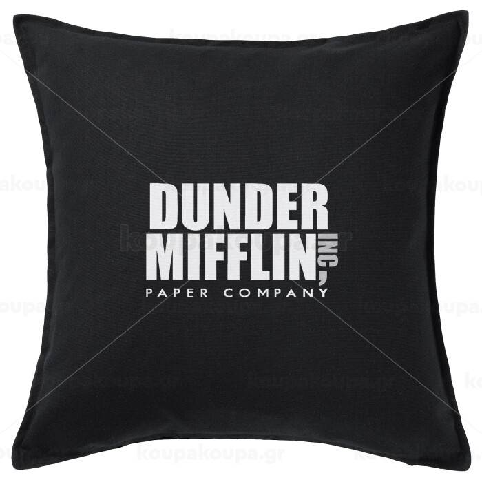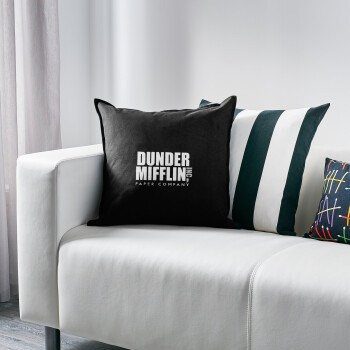 Dunder Mifflin, Inc Paper Company, Μαξιλάρι καναπέ Μαύρο 100% βαμβάκι, περιέχεται το γέμισμα (50x50cm)