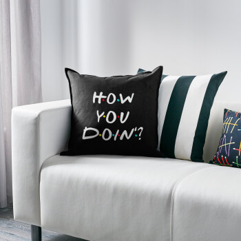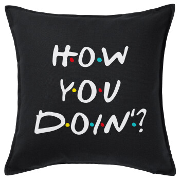 Friends How You Doin'?, Μαξιλάρι καναπέ Μαύρο 100% βαμβάκι, περιέχεται το γέμισμα (50x50cm)