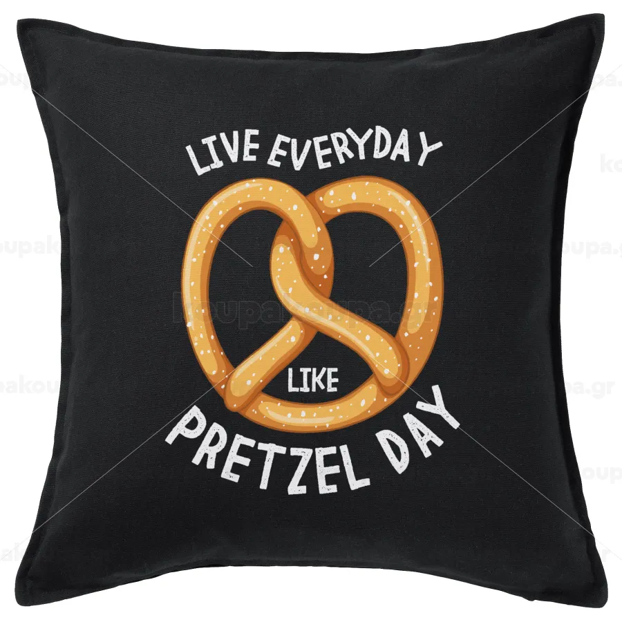The office, Live every day like pretzel day, Μαξιλάρι καναπέ Μαύρο 100% βαμβάκι, περιέχεται το γέμισμα (50x50cm)