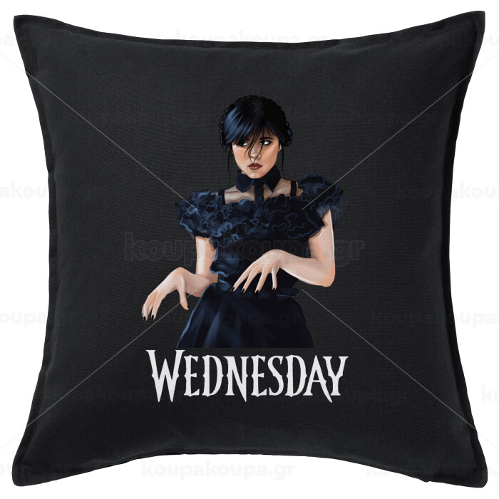 Wednesday Adams, dance with hands, Μαξιλάρι καναπέ Μαύρο 100% βαμβάκι, περιέχεται το γέμισμα (50x50cm)