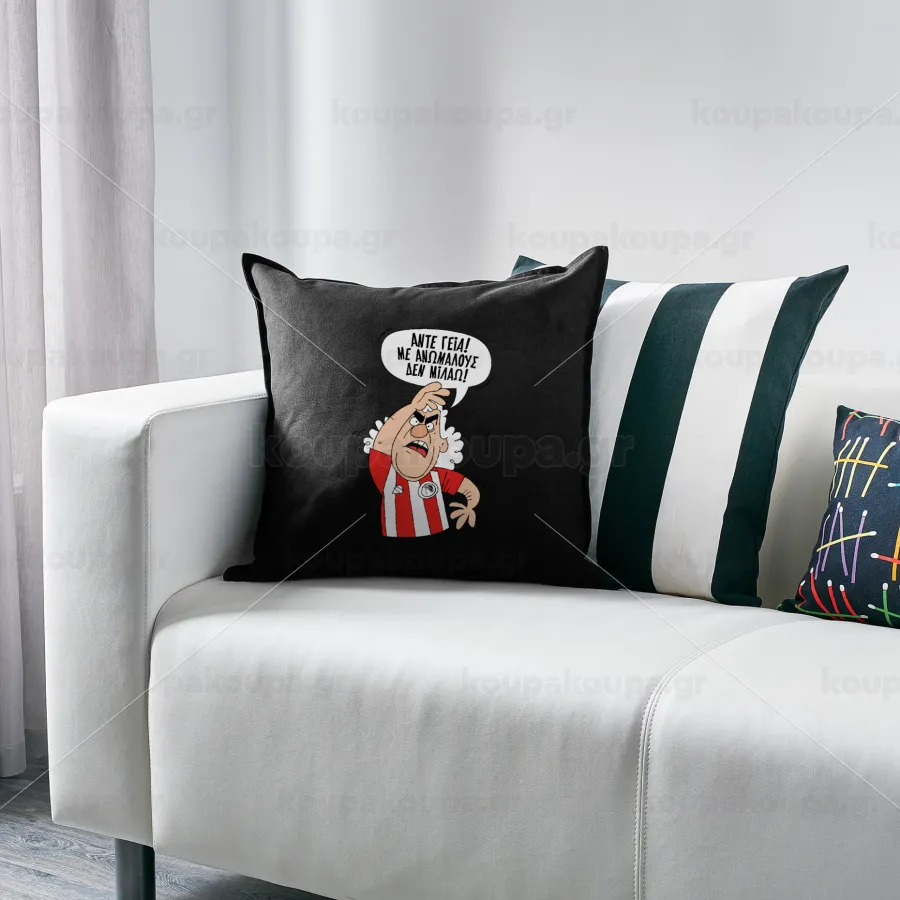 Τάκης, Άντε γεια, με ανώμαλους δεν μιλάω!, Μαξιλάρι καναπέ Μαύρο 100% βαμβάκι, περιέχεται το γέμισμα (50x50cm)