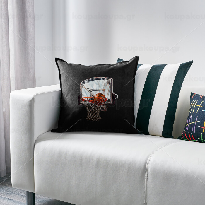 Basketball, Μαξιλάρι καναπέ Μαύρο 100% βαμβάκι, περιέχεται το γέμισμα (50x50cm)