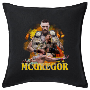 Conor McGregor Notorious, Μαξιλάρι καναπέ Μαύρο 100% βαμβάκι, περιέχεται το γέμισμα (50x50cm)