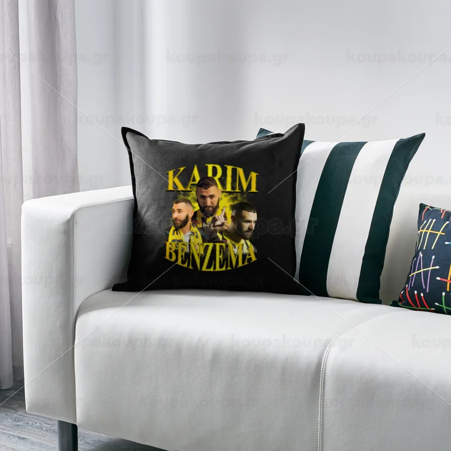 Karim Benzema, Μαξιλάρι καναπέ Μαύρο 100% βαμβάκι, περιέχεται το γέμισμα (50x50cm)