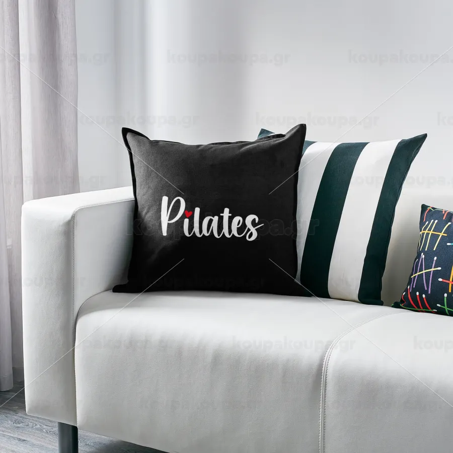 Pilates love, Μαξιλάρι καναπέ Μαύρο 100% βαμβάκι, περιέχεται το γέμισμα (50x50cm)