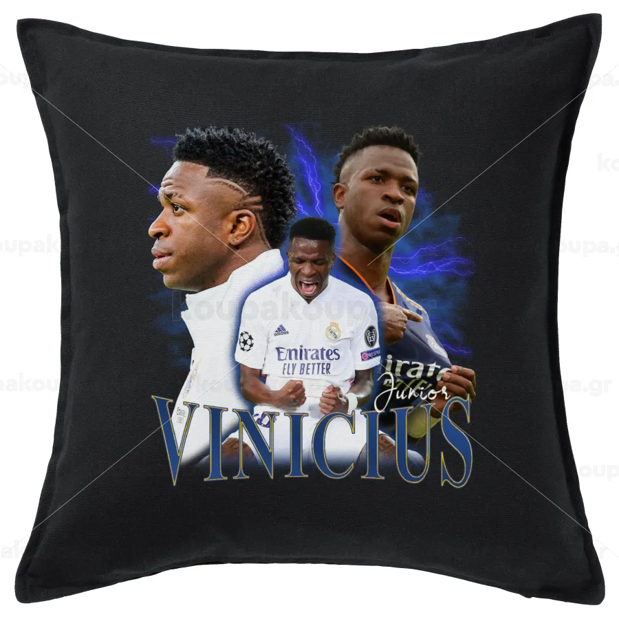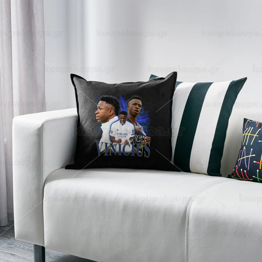 Vinicius Junior, Μαξιλάρι καναπέ Μαύρο 100% βαμβάκι, περιέχεται το γέμισμα (50x50cm)