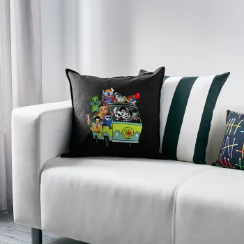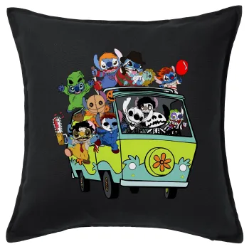 Stitch Halloween scooby car, Μαξιλάρι καναπέ Μαύρο 100% βαμβάκι, περιέχεται το γέμισμα (50x50cm)