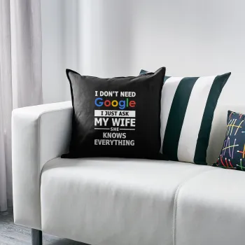 I don't need Google, just ask my WIFE, Μαξιλάρι καναπέ Μαύρο 100% βαμβάκι, περιέχεται το γέμισμα (50x50cm)