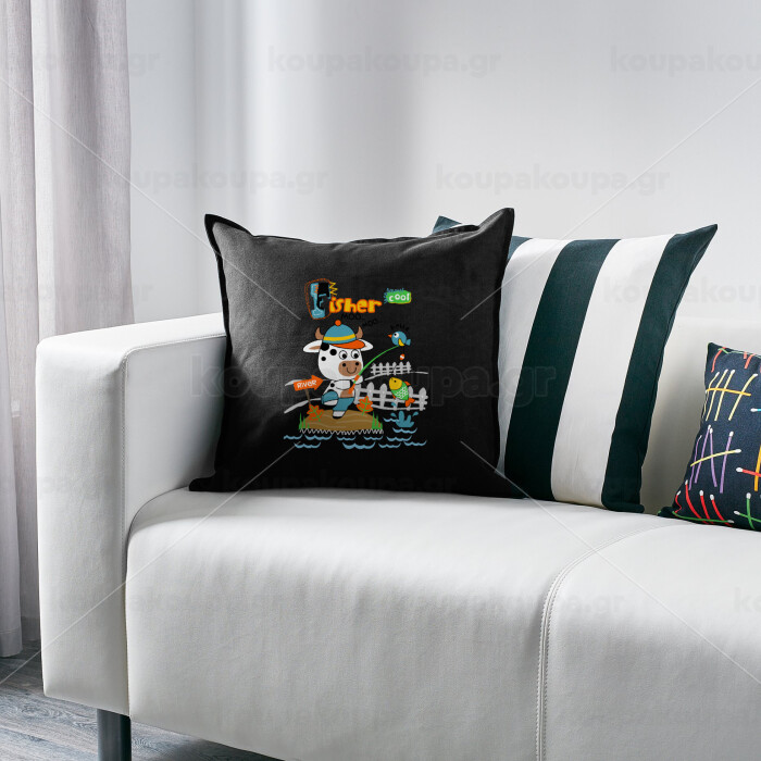 Ο μικρός ψαράς, Μαξιλάρι καναπέ Μαύρο 100% βαμβάκι, περιέχεται το γέμισμα (50x50cm)