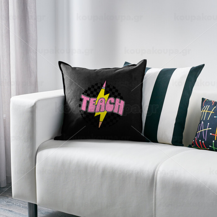 Teach, Μαξιλάρι καναπέ Μαύρο 100% βαμβάκι, περιέχεται το γέμισμα (50x50cm)