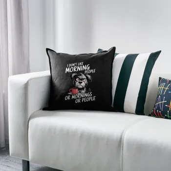 I Don't Like Morning People..., Μαξιλάρι καναπέ Μαύρο 100% βαμβάκι, περιέχεται το γέμισμα (50x50cm)