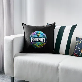 Fortnite land, Μαξιλάρι καναπέ Μαύρο 100% βαμβάκι, περιέχεται το γέμισμα (50x50cm)