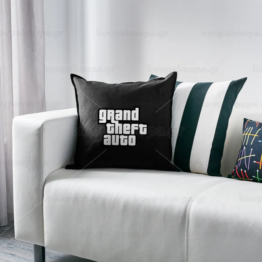 GTA (grand theft auto), Μαξιλάρι καναπέ Μαύρο 100% βαμβάκι, περιέχεται το γέμισμα (50x50cm)