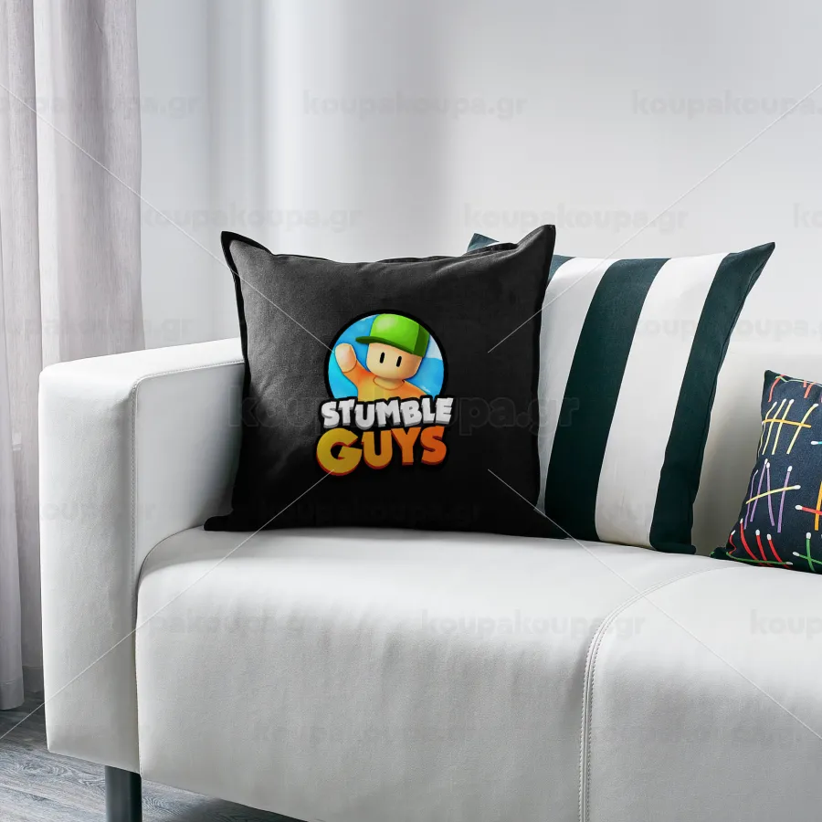Stumble Guys, Μαξιλάρι καναπέ Μαύρο 100% βαμβάκι, περιέχεται το γέμισμα (50x50cm)
